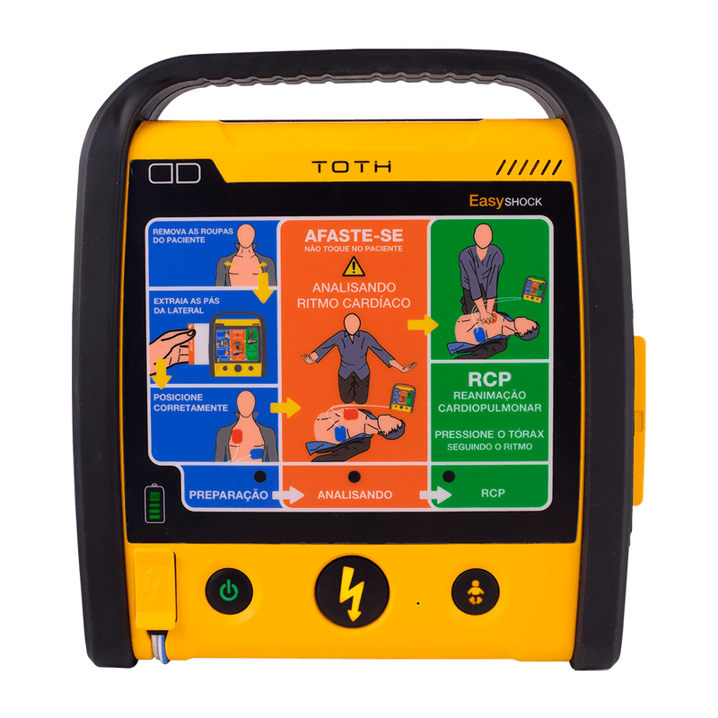 O aparelho conta com monitoramento de ECG, SpO2, metrônomo AHA integrado, além do feedback em tempo real sobre as compressões torácicas, que ajudam na qualidade da RCP. Robusto e com baterias de alta duração, o Easyshock adapta-se de acordo com a necessidade do local ou frequência de uso.